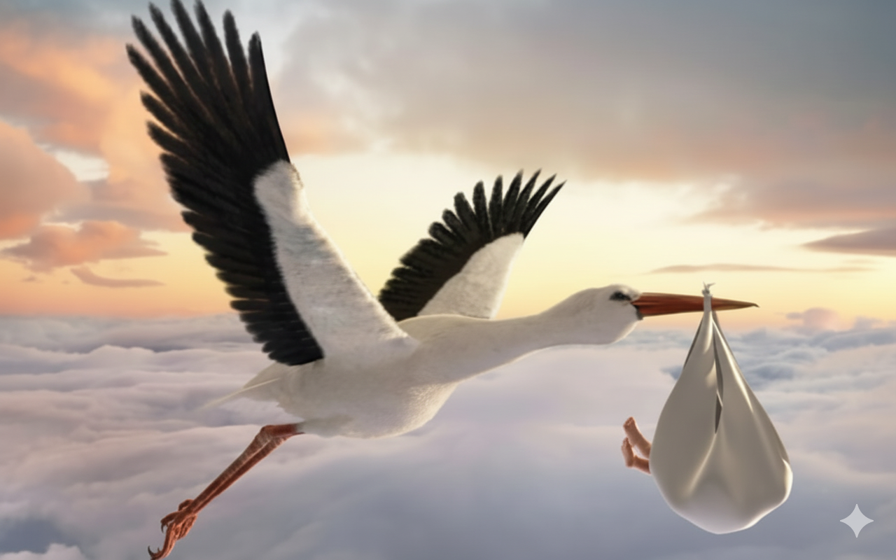 «Прошу прощения за опоздание, в небе пробки. Буду через 9 месяцев. Аист.»