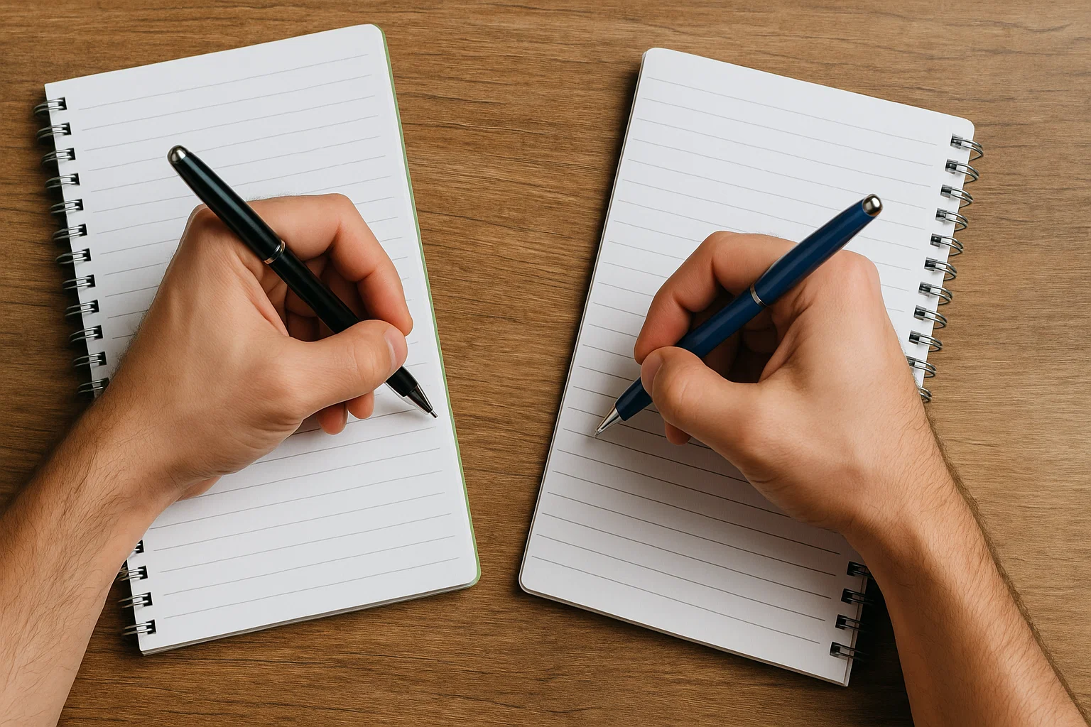 - Пробуйте писать обеими руками. Сначала буквы будут кривыми, но мозг быстро адаптируется.