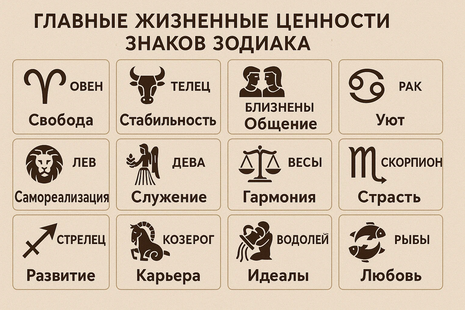 Каждый знак зодиака живёт своими приоритетами — и все они по-своему прекрасны.