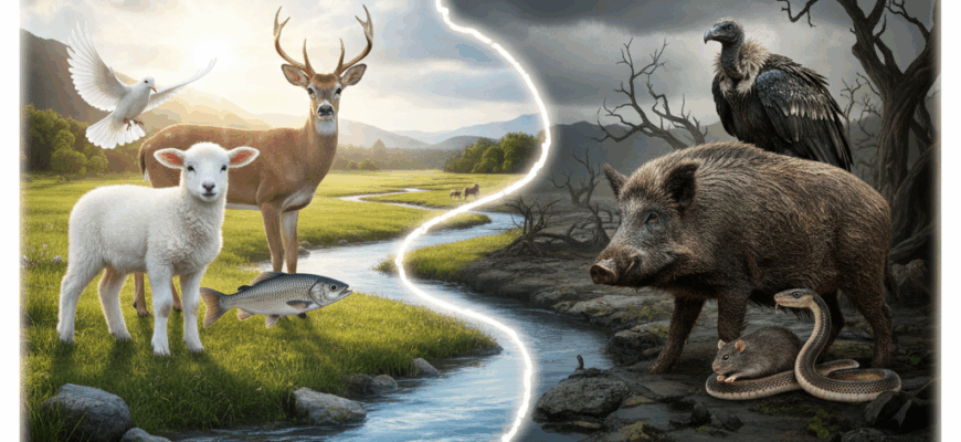 Тема чистых и нечистых животных приходит к нам из библейской традиции. В книгах Левит и Второзаконие описаны группы животных, пригодных к употреблению